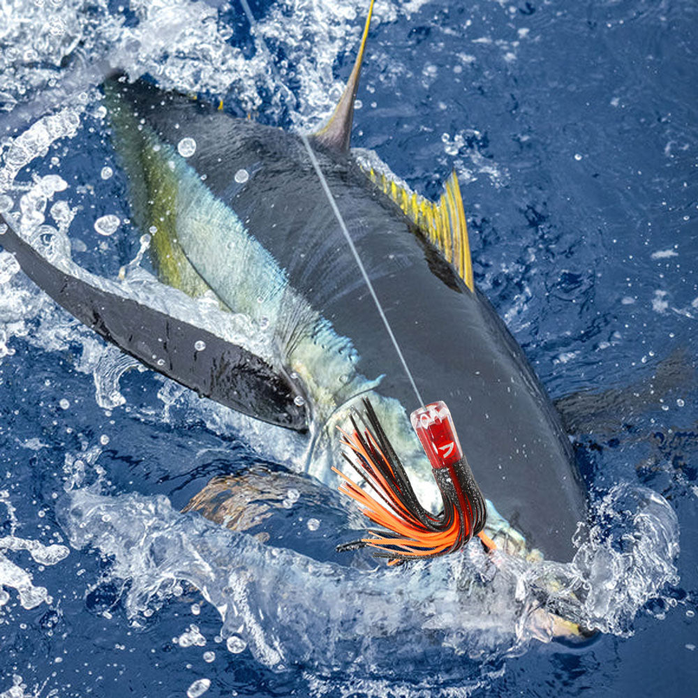 Pre-rigged version is tournament rigged on 5 ft Length 140 lbs Mono Line with stainless steel single 9/0 hookset.